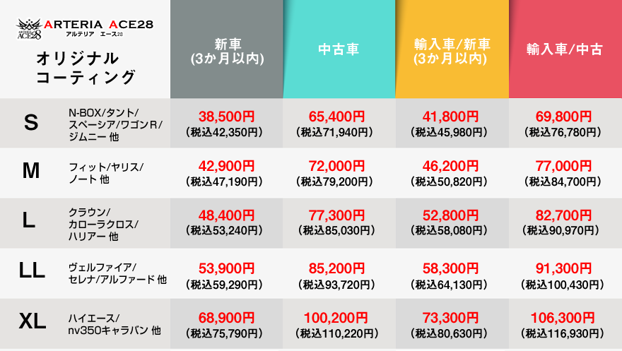 「高硬度ガラス系プライマー」と「ガラス系トップコート」の2層式プレミアムコートで上品な光沢感と、耐スクラッチ性能でお車を守ります。